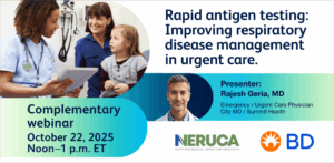 Join us for an insightful webinar sponsored by BD and featuring Dr. Rajesh Geria, a board-certified emergency physician with over 12 years’ experience treating patients in corporate and private urgent care settings. Dr. Geria will discuss several key benefits of rapid antigen testing for respiratory diseases in urgent care, highlighting how these tests provide quick and accurate results that lead to better patient outcomes. Dr. Geria will incorporate real-world examples and success stories that demonstrate the efficiency and reliability of rapid antigen tests. Don’t miss this opportunity to learn from an experienced clinician about rapid and reliable diagnostic tools like the BD VeritorTM Plus System.